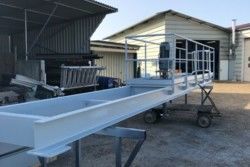 Réalisation d'une passerelle en acier pour accès à la turbine dans un bassin d'aération. Longueur 9 m avec 1 largeur de 1m.